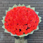 На фото букет из 101 коралловой розы. В составе: роза 101 шт, дизайнерская упаковка 2 шт, атласная лента 1 шт, . Все цветы свежие и ароматные, букет красиво оформлен и отлично подходит для подарка. Доступна доставка цветов или самовывоз.