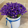 45 фиолетовых ирисов в шляпной коробке в Старом Крыму